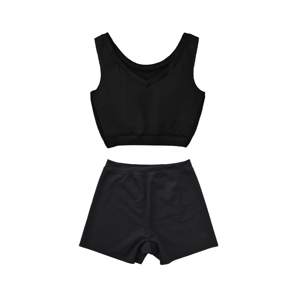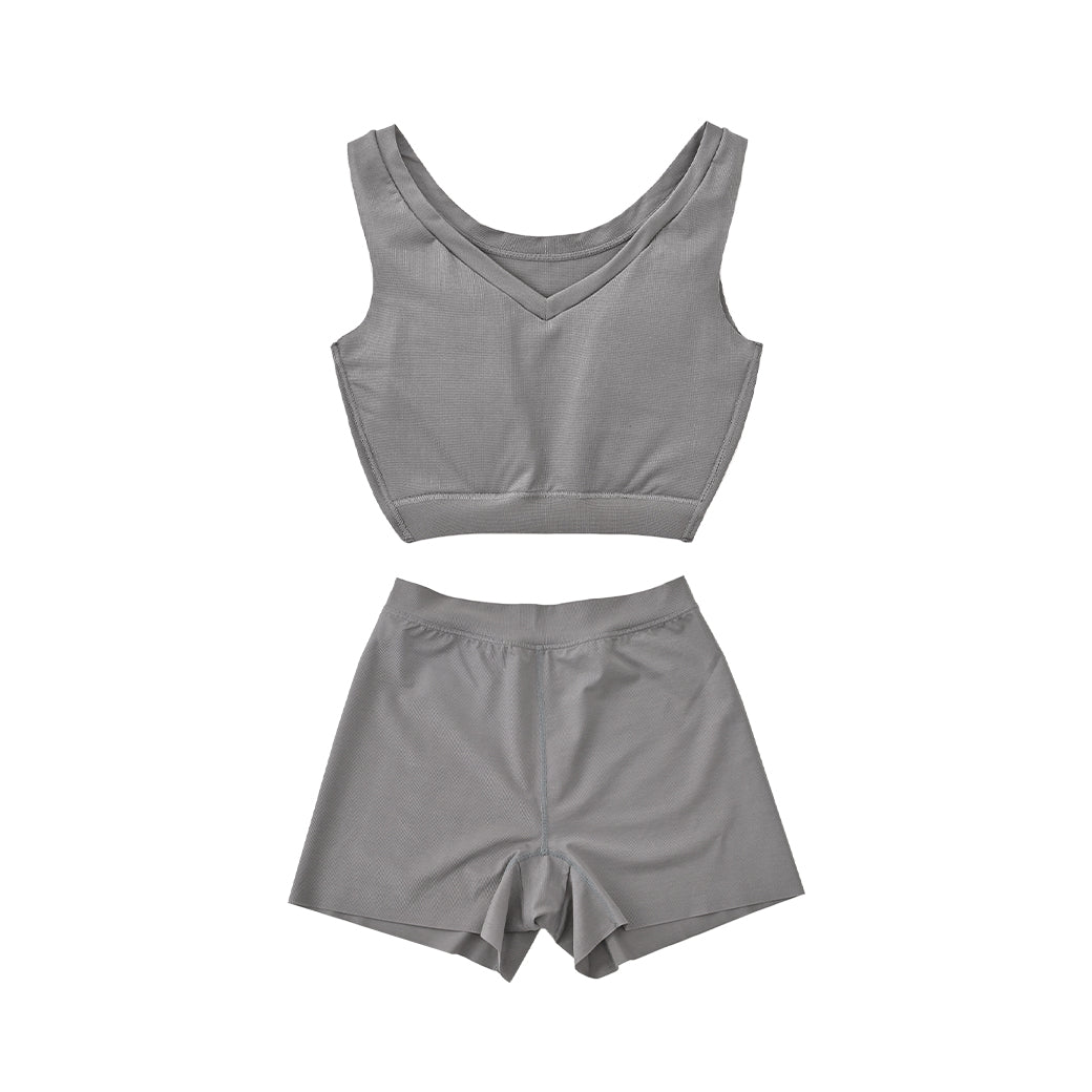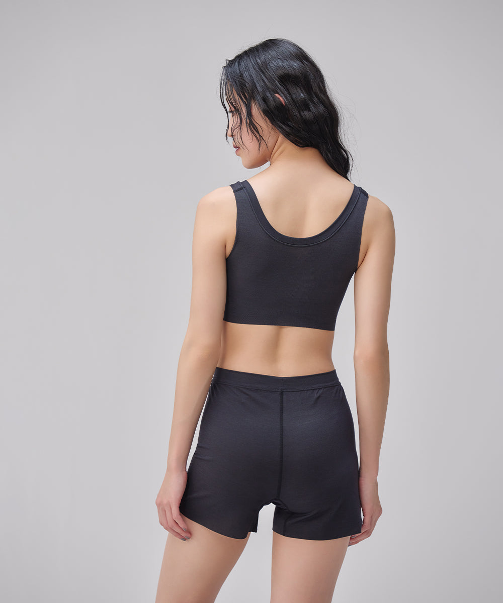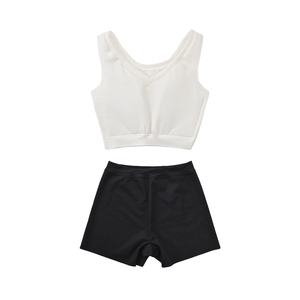 シャープなVネックがあらゆるファッションに合わせやすいNstyleのバストフラットインナー、Vネックハーフトップと、履いていることを忘れてしまいそうな心地よさのリラックスショーツをセットにしました。